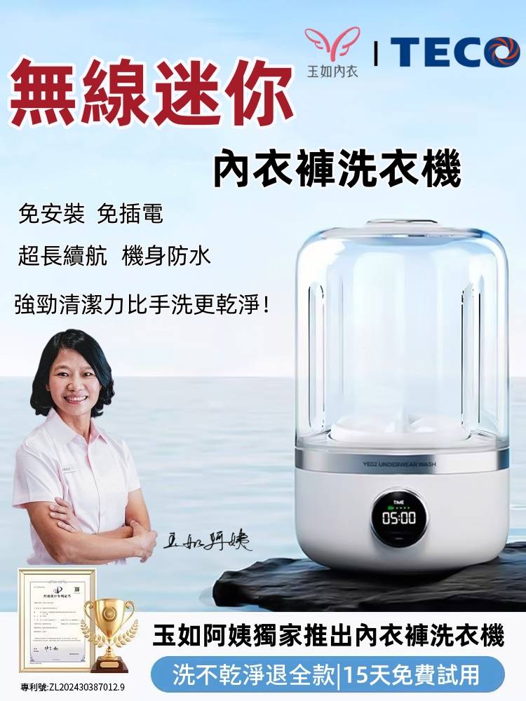 15分鐘前玉如阿姨獨家推出TECO迷你洗衣機,一鍵啟動解放雙手含銀離子持久抑菌,小巧機身功能齊全整機防水防潮防濕 - 內衣內褲分開洗 限時特惠 二入組NT$1990
